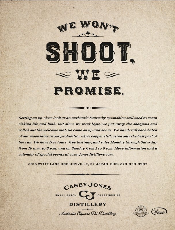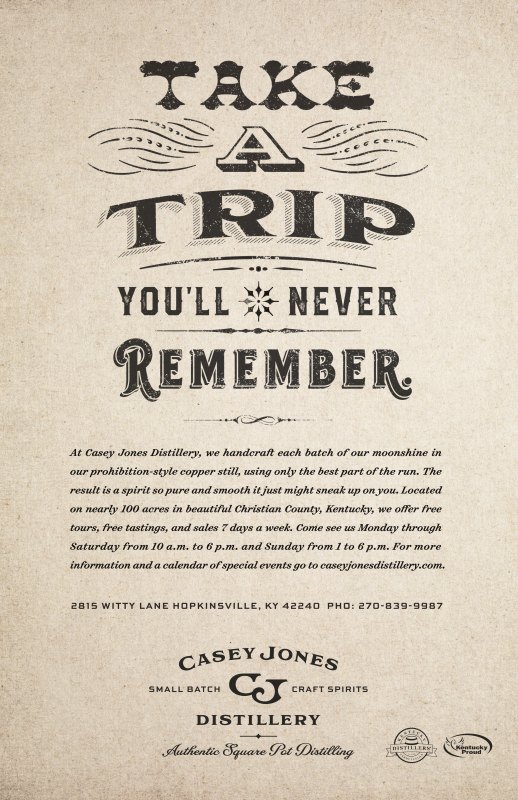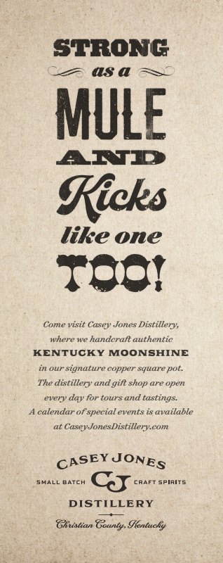 Casey Jones Distillery is the creation of Arlon Casey Jones, grandson of the legendary Prohibition-era still maker Casey Jones. Using a still of his grandfather’s design and a generations-old family recipe, the Distillery makes Casey Jones Moonshine, a smooth, easy-sipping spirit with an authentic, illicit history.