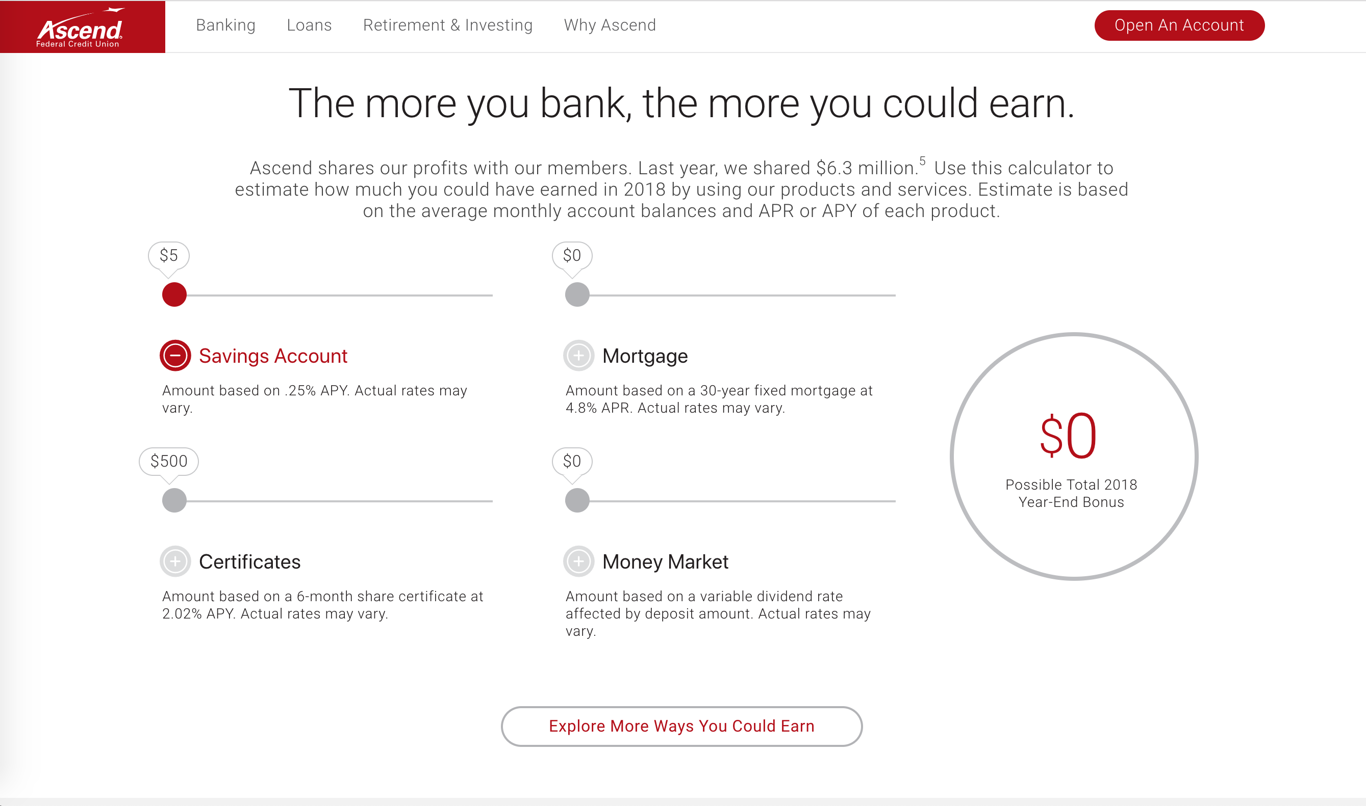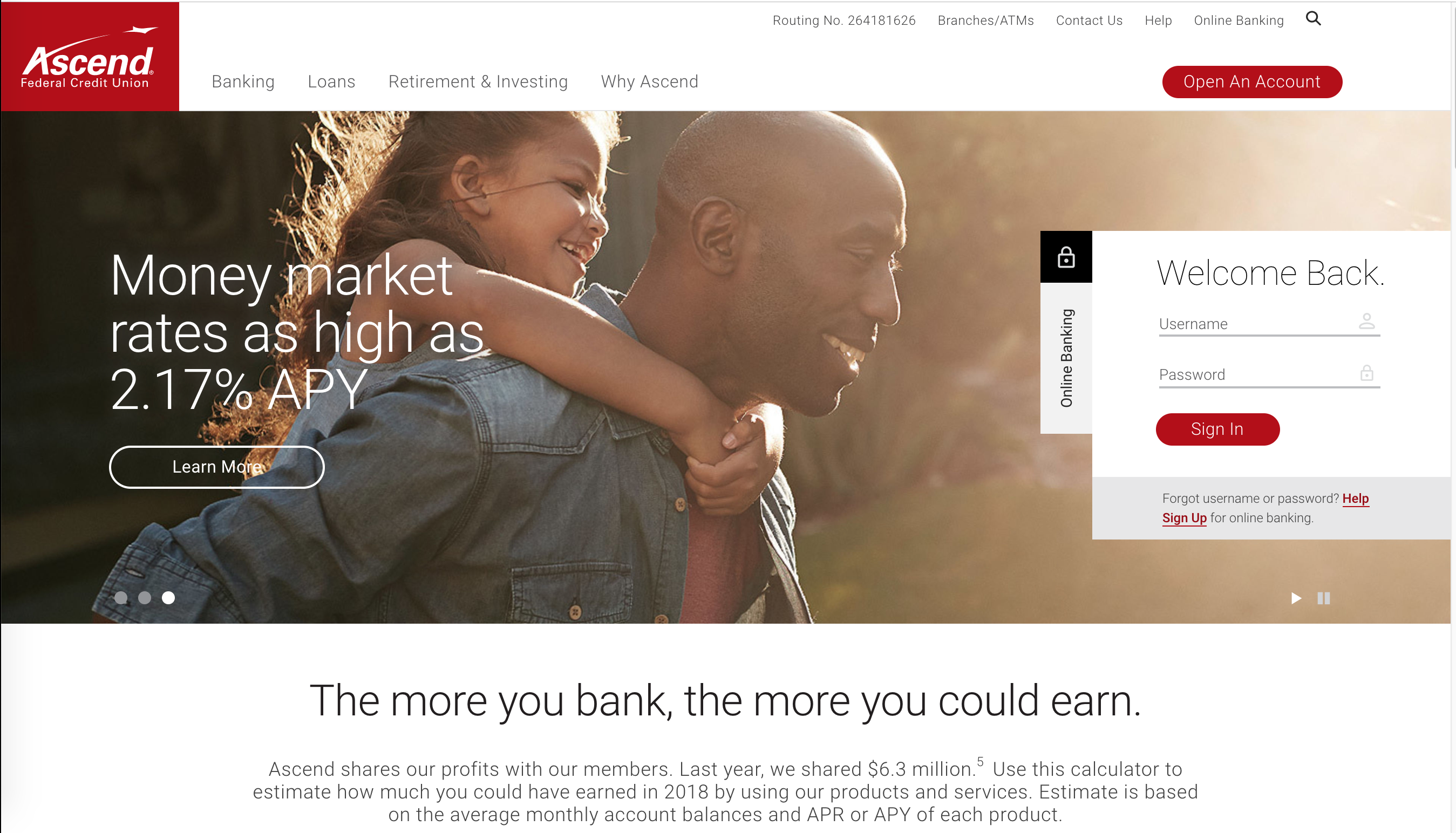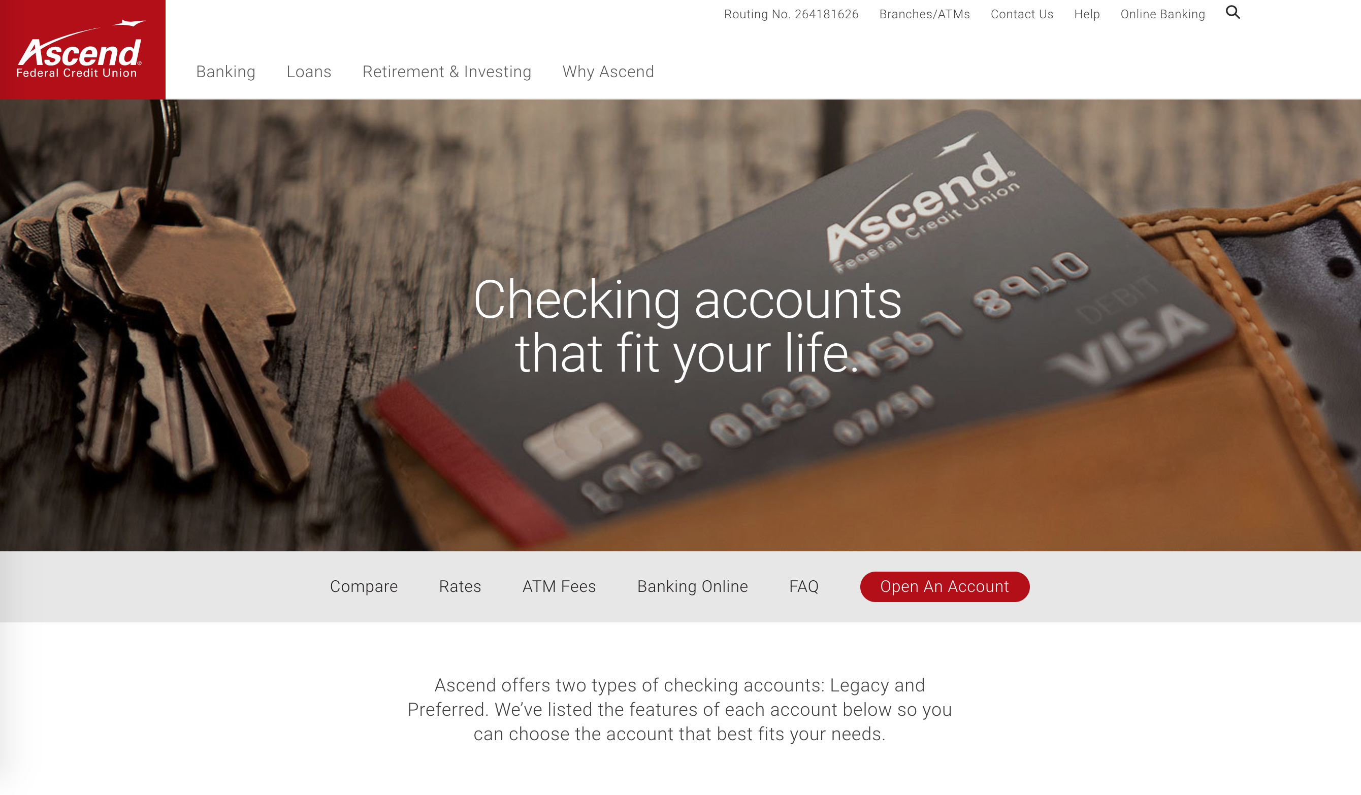 Ascend Federal Credit Union is dedicated above all to serving their members. They needed a website that reflected that part of their mission by being an easy-to-navigate resource for any financial need a member might have. We started from scratch to build a contemporary site with entirely new content and an improved user experience.